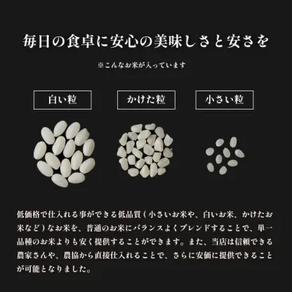 このブレンド米は、異なる品種の米を組み合わせることで、豊かな風味と食感を実現しています。