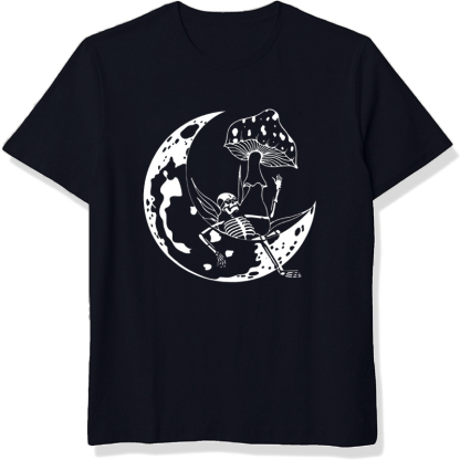Skull on The Moon Printed Men's Short Sleeves T-Shirt